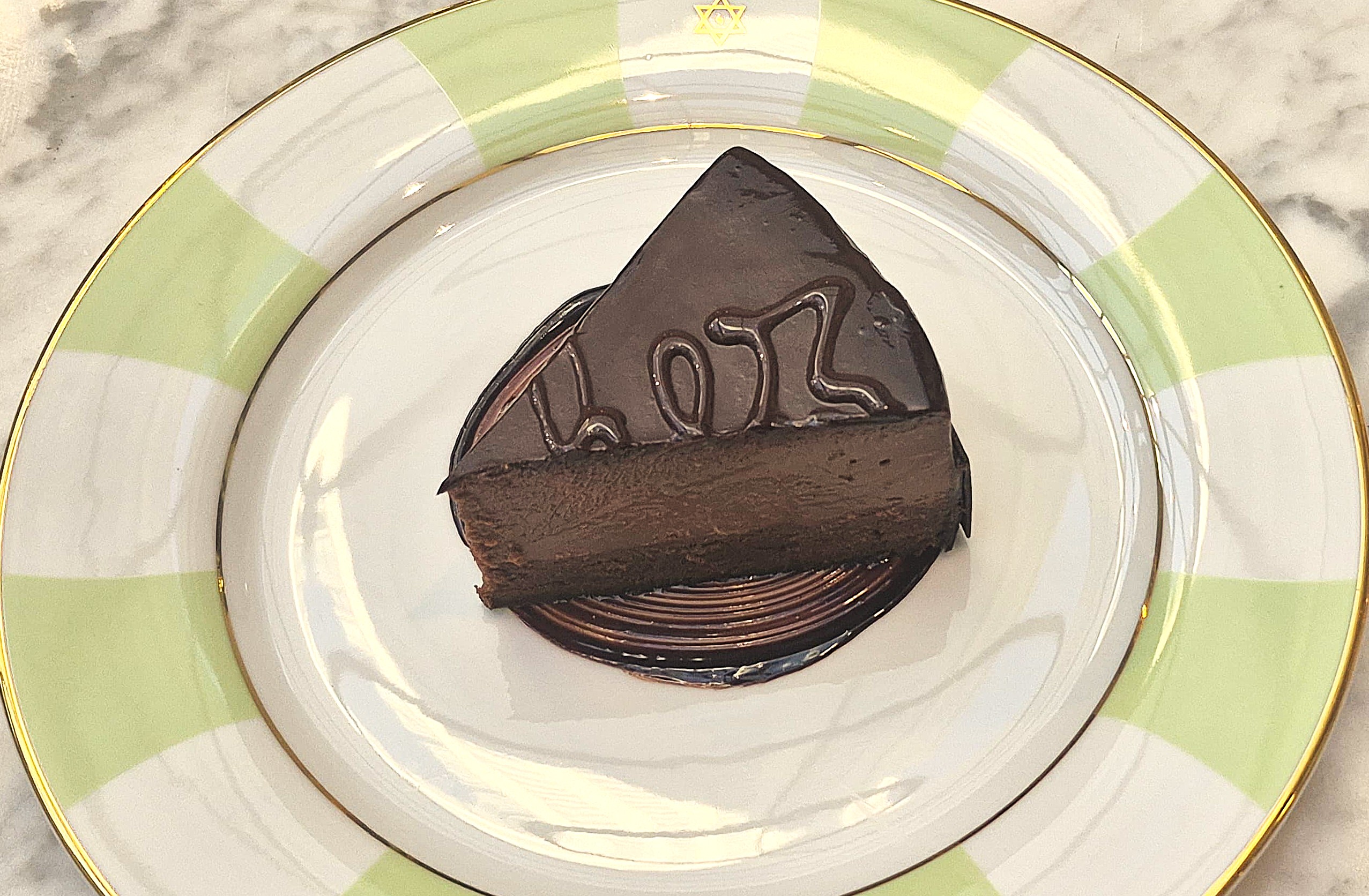 mousse de chocolate, centro de avellanas con baño crocante